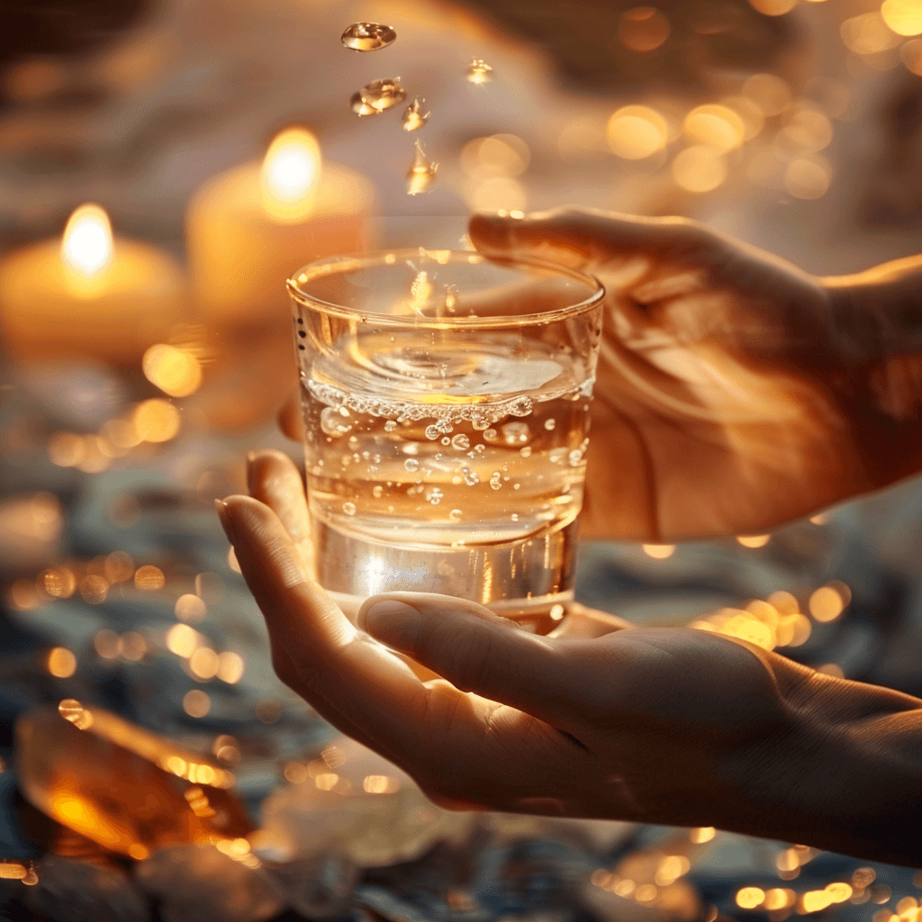 Bois cette eau lentement en ressentant l'équilibre s'installer en toi